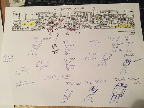 I did the diode check on the DMM on T3 too to see if that identified anything, there was an oddity in the Collector to Emitter of 1.75v (whilst amp was switched OFF)